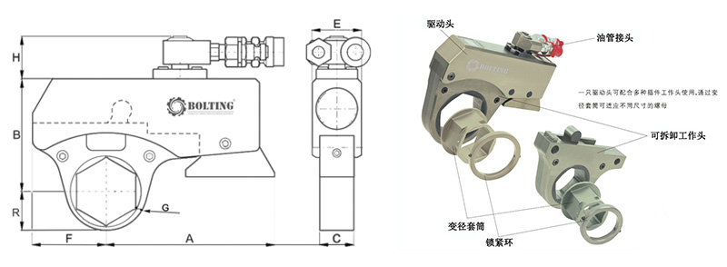 產(chǎn)品的選取依據(jù)螺栓鎖緊和拆松扭矩而定,扭矩值會因螺栓直徑和強(qiáng)度等級不同而有所變化。 |