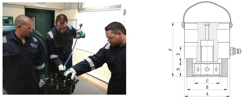 • 彈簧自動復(fù)位,活塞過行程保護,當活塞達到最大行程時,將可見一根紅色警示線,拉伸器內(nèi)部的一個簡單的機械失效裝置將避免液壓油濺傷作業(yè)人員;