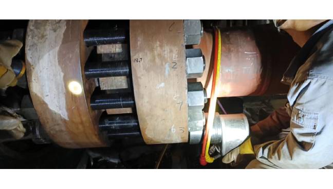 其實(shí)大型水輪機(jī)的很多位置也都是使用使用高強(qiáng)螺栓連接,像基礎(chǔ)環(huán)、座環(huán)、蝸売、尾水管排水盤(pán)形閥及其附件、蝸殼排水盤(pán)形閥及其附件機(jī)坑里襯底環(huán)、頂蓋、轉(zhuǎn)輪導(dǎo)葉及操作機(jī)構(gòu)、接力器、主軸及密封、輪機(jī)導(dǎo)軸承大軸自然補(bǔ)氣裝置等。這些螺栓的安裝預(yù)緊之后需要經(jīng)受住惡劣的運(yùn)行環(huán)境,因此預(yù)緊力要求也是比較高。水輪機(jī)安裝預(yù)緊或者檢修做采用的螺栓預(yù)緊工具一般是以液壓螺栓拉伸器為主。液壓螺栓拉伸器軸向拉伸,螺栓上所加載的預(yù)緊力損耗較少,有效加載更多。但在一些特殊的位置,螺栓周?chē)臻g特別小,只能使用薄型的中空液壓扳手來(lái)進(jìn)行預(yù)緊拆卸。因此,水輪機(jī)的安裝檢維修既需要螺栓拉伸器也需要液壓扳手。
