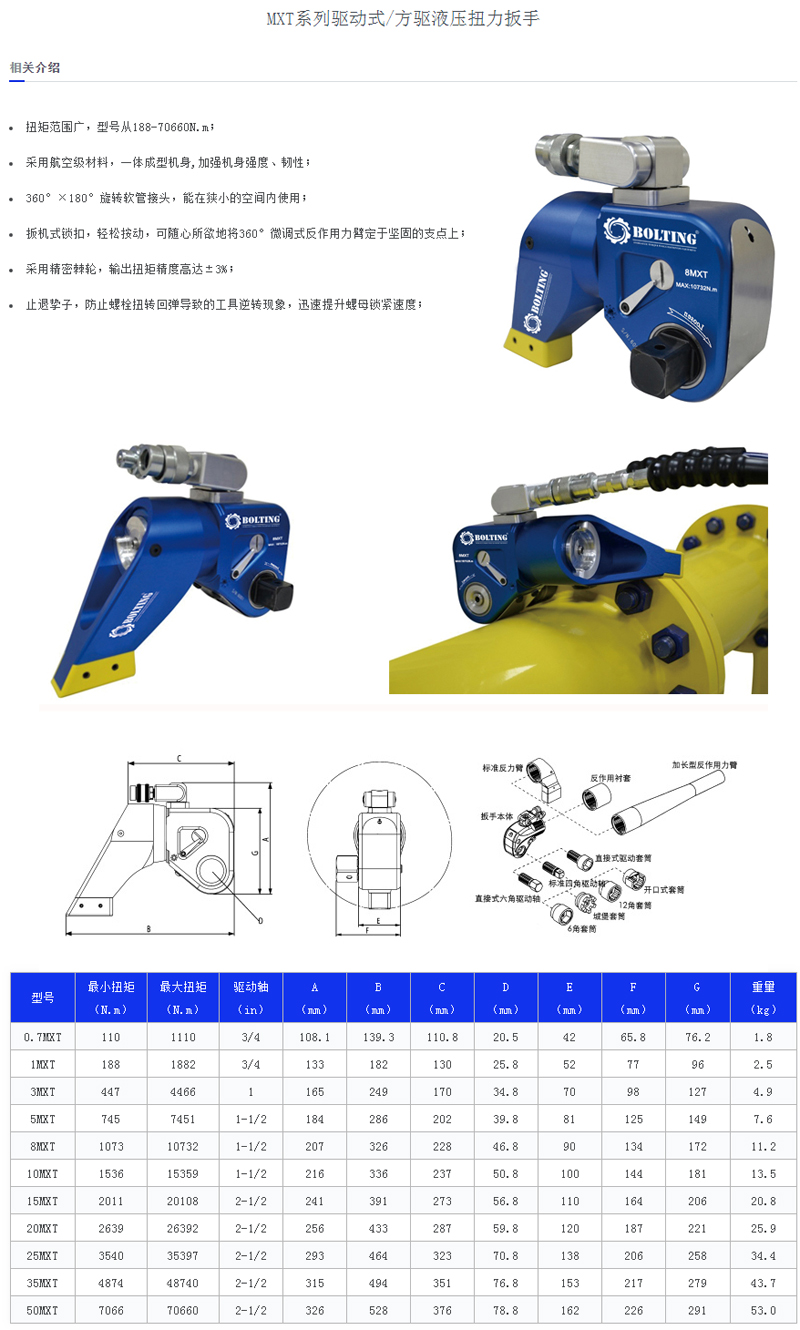 BOLTING品牌提供優(yōu)質(zhì)的工業(yè)工具組合:液壓扳手、螺栓拉伸器、液壓泵站、力矩倍增器、電動扭矩扳手、氣動扭矩扳手、液壓拉馬、液壓壓床、法蘭分離器、螺母破切器等多種類的產(chǎn)品,滿足各種客戶應(yīng)用要求。